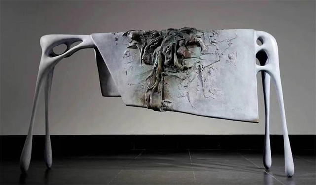 走進展廳,精美的藝術作品令人目不暇接,有造型獨特的椅子和沙發、抽象主義線條的藝術畫、各種充滿藝術氣息的白酒瓶,這些都和平常我們見到的不同,新穎別致,充滿藝術感。最令探班員印象深刻的是展廳中一套飯桌飯椅,獨具匠心、古樸厚重,用的卻是竹子這樣的環保材料。王曉宇介紹道:“這些兼具實用性的藝術品,充分體現了‘物感主義’藝術與生活的交融,真正做到了‘讓藝術回到生活現場’。”